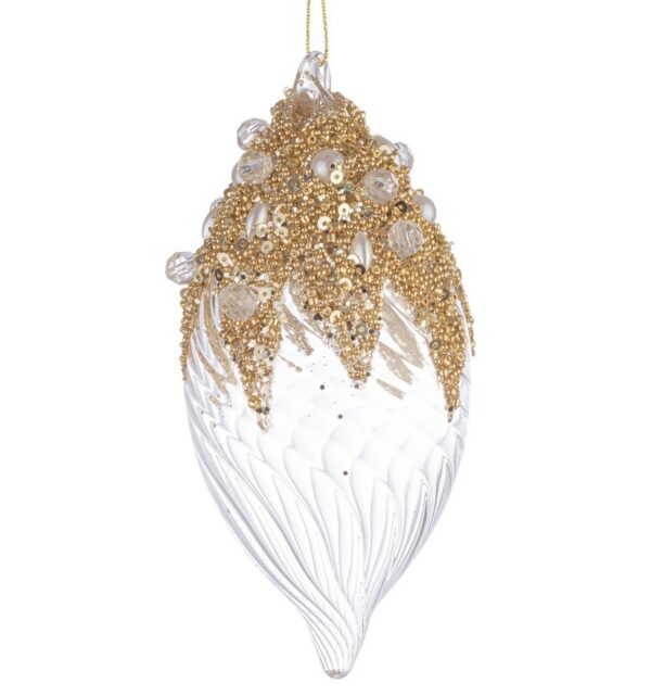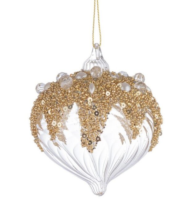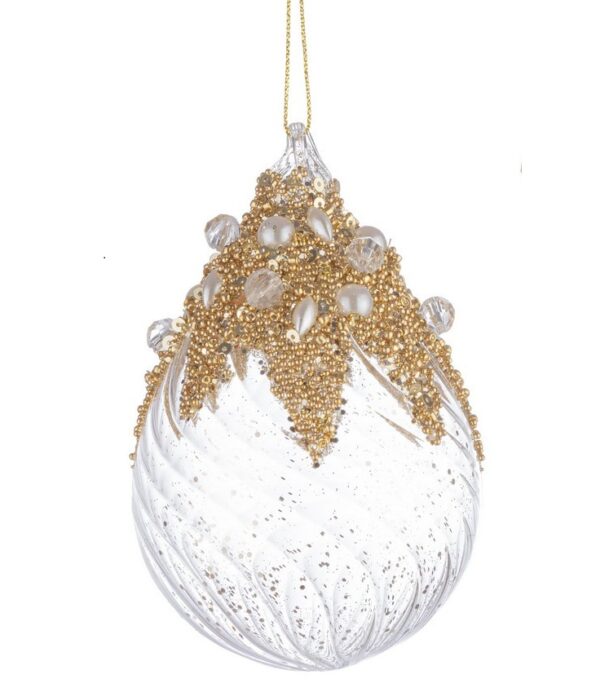 Addobbo Beautify in vetro trasparente incrostato di perle e perline oro, disponibile in 3 modelli