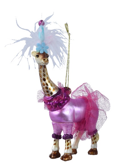 Addobbo  in vetro a forma di giraffa con tutina rosa, tutù e cappello