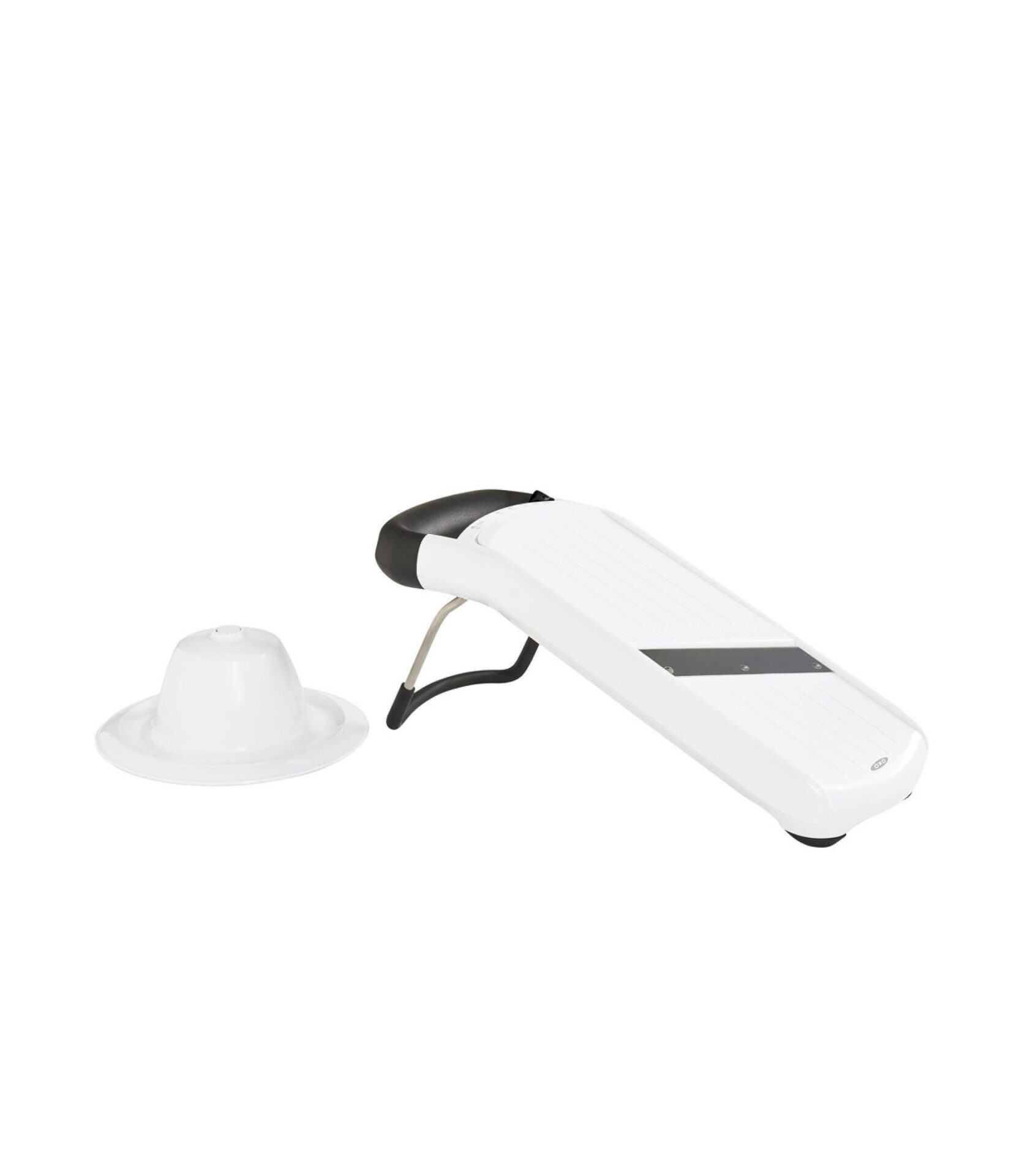 Scegli tra tre spessori di taglio e impostazioni per il taglio a julienne con la mandolina Simple. Il supporto a molla spinge il cibo per un taglio uniforme con il minimo spreco e ha un bordo generoso per proteggere le dita. La lama angolata e regolabile è integrata per sicurezza e praticità.