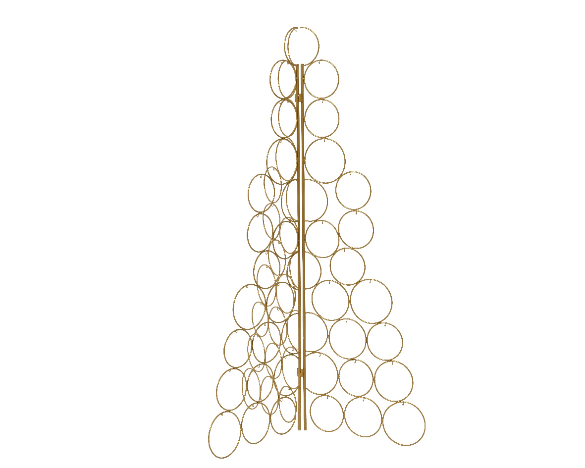 Struttura a forma di Albero di Natale in metallo dorato per appendere sfere o decorazioni.