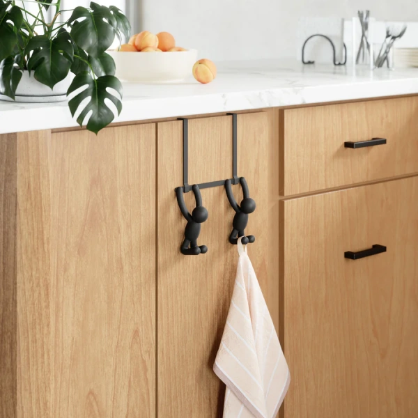 Buddy è l’esclusiva statuetta di Umbra, in versione gancio per porte; ideale per riporre oggetti come cappelli, sciarpe, cappotti e borse. Rispetto ai ganci tradizionali, questo oggetto d’arredamento ha un carattere più dinamico, in quando la statuetta sembra muoversi. Realizzato con una finitura opaca, Buddy OTD è realizzato per porte spesse fino a 4 cm e misura 21,6 x 30,5 x 10,8 cm. Tieni a portata di mano gli oggetti di cui hai bisogno, grazie a questo gancio spiritoso e decorativo. Realizzato con plastica riciclata e con una finitura più ecologica. La sua produzione prevede l’85% in meno di acqua e di rifiuti solidi rispetto alle tradizionali lavorazioni galvaniche.