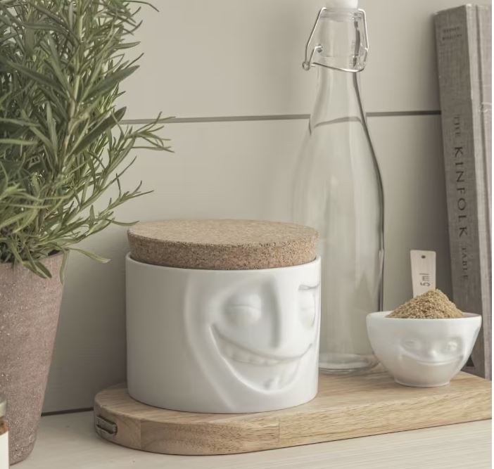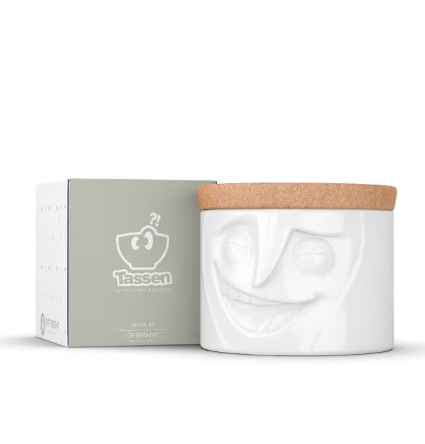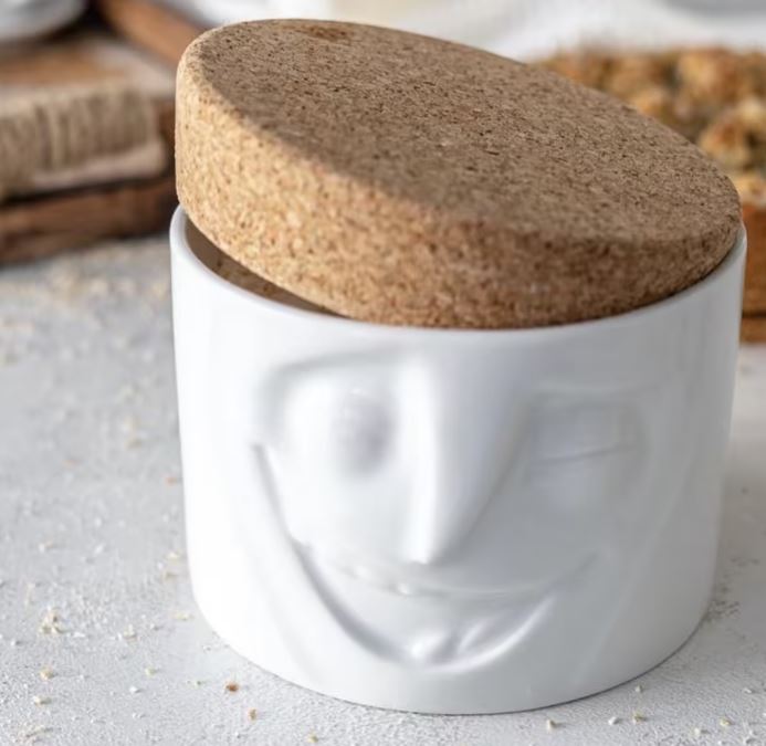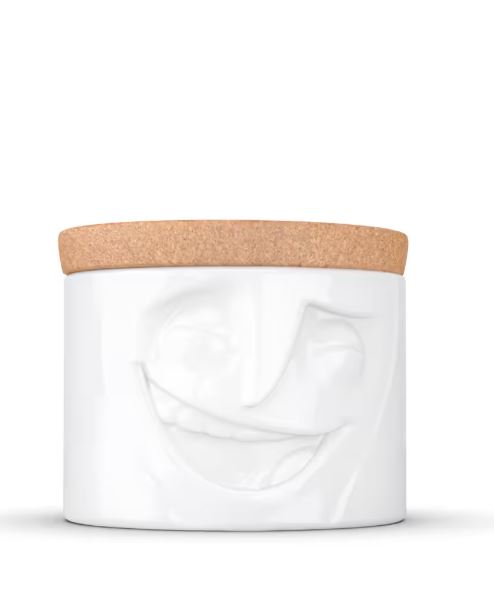 Simpaticissimo Barattolo realizzato in porcellana resistente lavabile in Lavastoviglie. Prodotto ispirandosi ad alcuni cortometraggi animati in 3D che rappresentano moltissime espressioni facciali di Star di videoclip virali su YouTube. La missione dei designer è quella di condividere il senso di umorismo e di cercare di mettere il buon umore già durante le prime ore del mattino. Il coperchio decorativo in sughero consente di impilare diversi vasetti uno sopra l’altro. Il barattolo è perfetto per conservare e servire snack, dolci e praline. Mantiene anche il tuo tè, caffè, zucchero, sale e spezie. Senza il coperchio, il barattolo può contenere posate e tovaglioli o fungere da vaso per le tue piante aromatiche e fiori. Oltre a tutte queste utilità, il piccolo incantatore si mette in posa anche come oggetto decorativo. Spedito in confezione regalo dal design esclusivo.