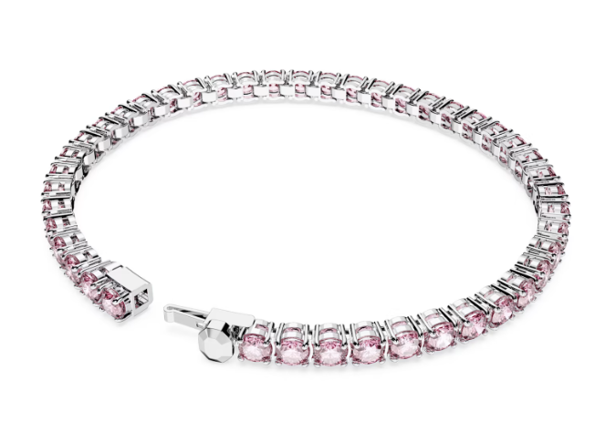 Godi del bagliore dei colori intensi con questo bracciale della famiglia Matrix Tennis. Perfettamente fluido questo design presenta una fila di pietre rotonde color rosa violaceo abbinate ad una montatura placcata rodio per una combinazione davvero seducente. Indossalo da solo o insieme ad altri gioielli della famiglia Matrix Tennis.