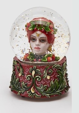 Carillon sfera di neve Sicily con testa di donna con turbante rosa