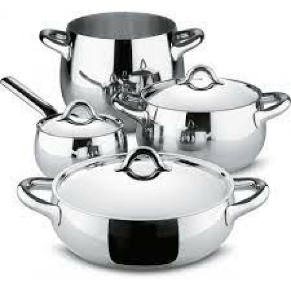 Casseruola a due manici in acciaio inossidabile 18/10 lucido. Fondo in acciaio magnetico adatto anche alla cottura a induzione.Mami
