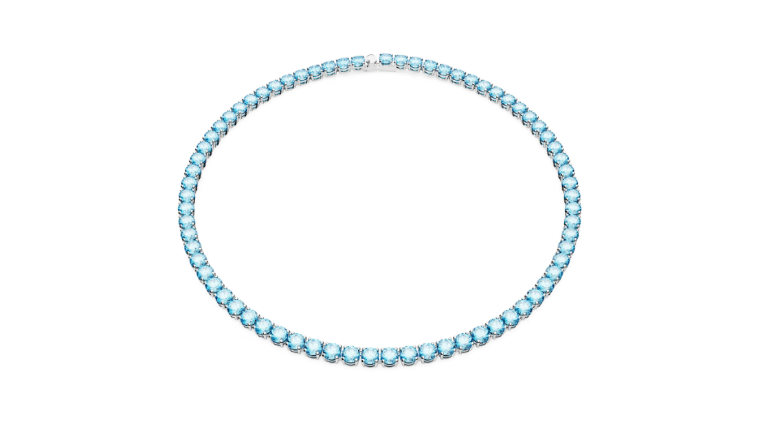 Questa collana Matrix Tennis è stata pensata per regalarti uno splendore immediato. Ogni suo cristallo rotondo di un blu intenso, incastonato in una catena placcata rodio per formare una fila perfetta, produce un effetto veramente sfavillante. Scegli la fluidità e vivacità di questo gioiello per impreziosire il tuo look di tutti i giorni.