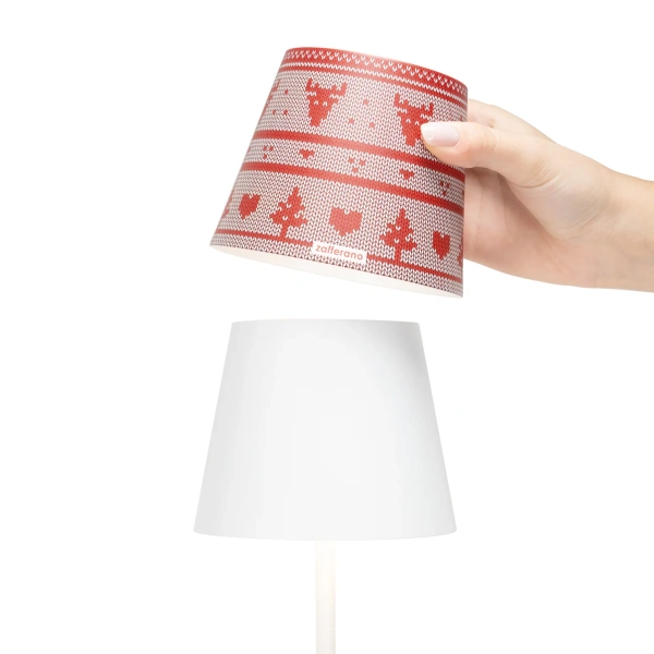 Aggiungi un tocco di gioia festiva alla tua casa nel periodo natalizio, con le esclusive cover in metallo, edizione Natale. Progettate per adattarsi perfettamente alla tua lampada senza fili Poldina, queste cover in metallo sono decorate con deliziosi motivi tematici che portano calore e allegria in ogni spazio. L’innovativa tecnologia di stampa permette un’alta qualità della definizione, che rende la tua lampada un elemento speciale per l’arredamento natalizio. La cover si può usare su tante lampade: Poldina da tavolo (sia cordless sia in versione a tensione di rete), da tavolo mini, a sospensione, da parete, con picchetto, e Poldina Reverso. Scegli tra una varietà di decori a tema natalizio come stelle, pigne, vischio e tartan: queste cover sono anche regali sorprendenti per amici e familiari. Lascia brillare lo spirito del Natale e crea momenti magici con una Poldina personalizzata: la lampada in cui si fondono stile e funzionalità.