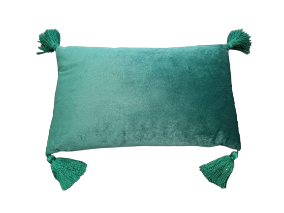 Cuscino rettangolare in velluto con nappe (completo di imbottitura), dotato di cerniera (sfoderabile)