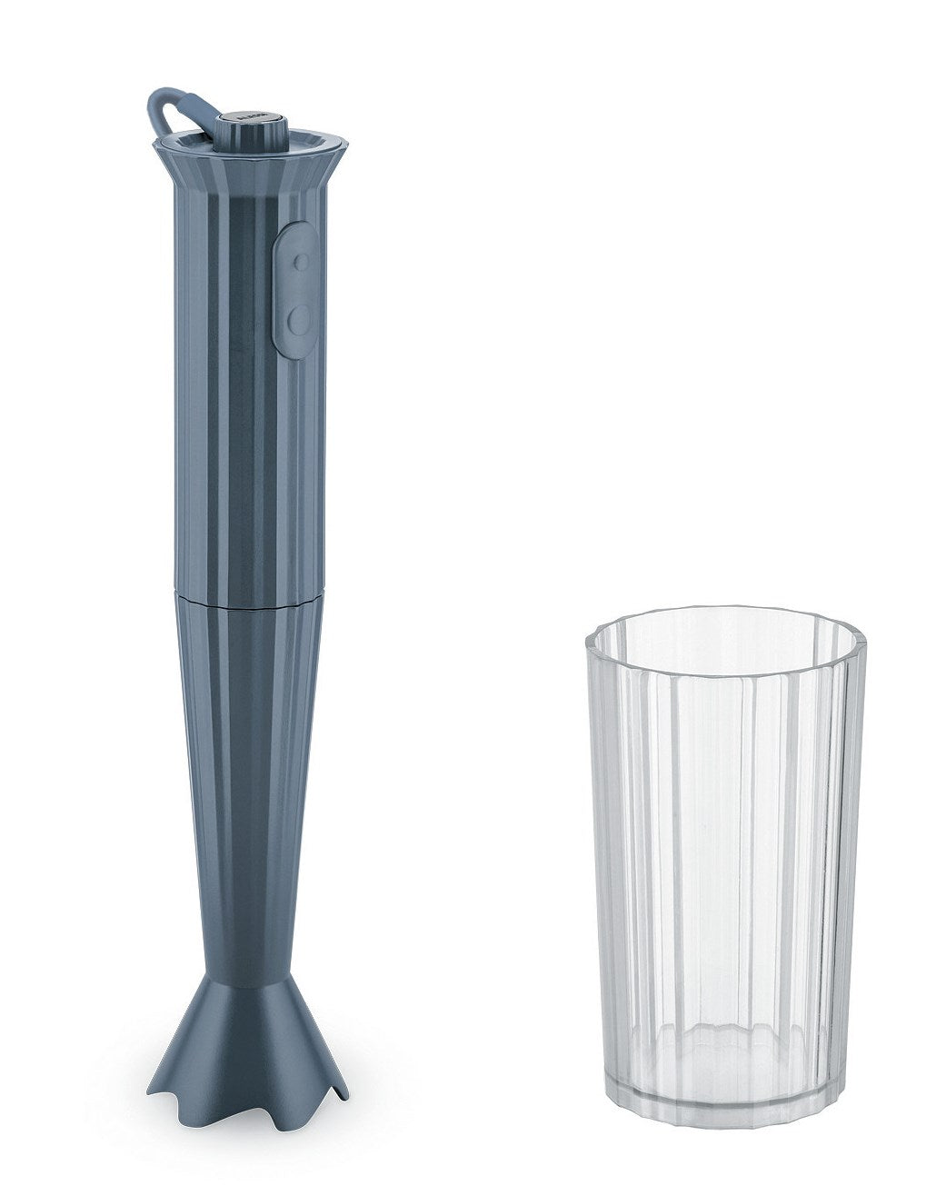 Frullatore a immersione in resina termoplastica, grigio. Bicchiere graduato in resina termoplastica (PCTG). Spina europea. 500WPlissé