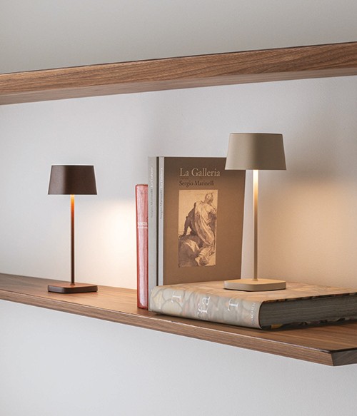 Ofelia micro è una lampada da tavolo a batteria, portatile e ricaricabile. Nella parte superiore della testa è presente un controllo “touch”, che permette l’accensione, la regolazione dell’intensità luminosa e la selezione della temperatura di colore della luce tra 2200K, 2700K e 3000K. Ofelia micro possiede inoltre la funzione di memoria dell’impostazione di dimmerazione, che memorizza gli step di dimmerazione. Grazie a un alto indice di protezione, la lampada è utilizzabile anche all’esterno.