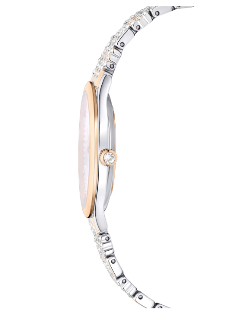 In questo squisito orologio di fattura svizzera, la calda finitura in tono oro rosa è abbinata al freddo acciaio inossidabile e a una gamma completa di 251 cristalli. La colorazione si abbina perfettamente al quadrante guilloché color argento con cristalli per indici e al sottile bracciale ravvivato da un pavé di abbaglianti cristalli trasparenti. Sono da sottolineare anche l’unica pietra disposta nella corona e una resistenza all’acqua fino a 50 m. Questo affascinante orologio da 30 mm è stato progettato per essere notato e ti farà arrivare sempre in orario per tutta la giornata.