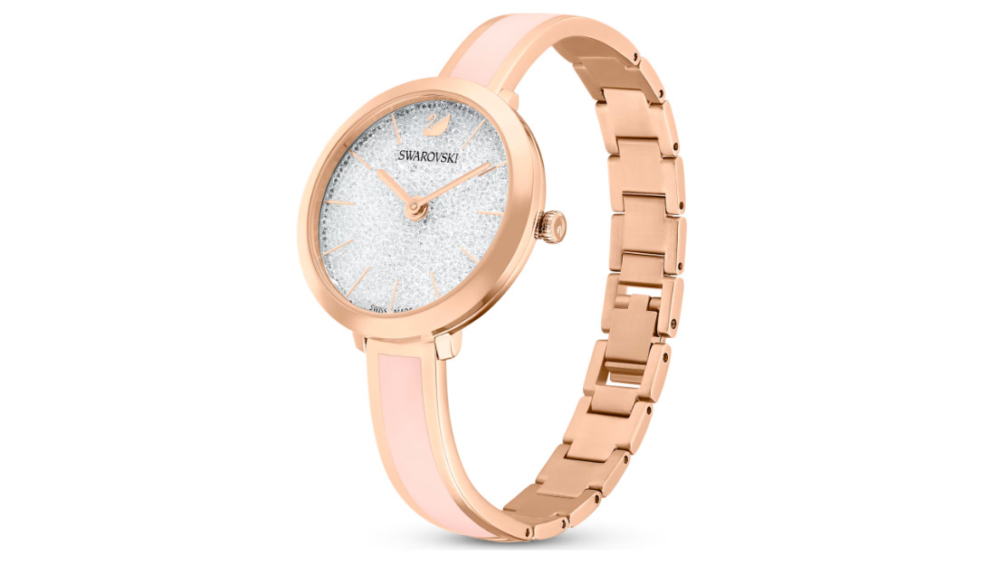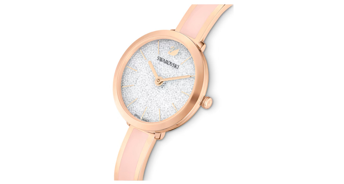 Scegli questo splendido orologio Crystalline Delight e indossa circa 1.000 cristalli al polso. Un quadrante moderno, un cinturino rosa ed un’elegante finitura in tonalità oro rosa creano una combinazione seducente per lo stile di tutti i giorni. Prodotto in Svizzera e resistente all’acqua fino a 50 m, è realizzato con maglie regolabili per garantire una vestibilità perfetta.