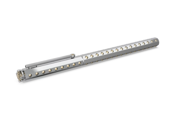 Trasforma la scrittura in un’opera d’arte con questa penna a sfera esclusiva SCS, ispirata alla linea Millenia. Impreziosita da cristalli e dal logo inciso Swarovski Crystal Society, darà via libera alla fantasia. Rifinita da una slanciata struttura in metallo e un cappuccio rimovibile munito di punta di cristallo che non passa inosservata, garantisce un’esperienza di scrittura fluida ed elegante. Perché non regalartela oppure farne dono ad una persona cara?