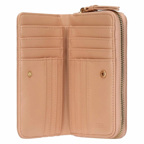 Questo portafoglio da donna in ecopelle rosa, dalle dimensioni medie, unisce perfettamente eleganza e funzionalità e offre ampio spazio per carte, banconote e monete, mantenendo un design compatto e pratico. Il colore rosa dona un tocco di delicatezza, rendendolo ideale per chi cerca un accessorio sofisticato ma allo stesso tempo versatile. Perfetto per l’uso quotidiano, si adatta facilmente alla tua borsa grazie alla sua forma compatta. Coniugando ordine, praticità e stile, è il portafoglio ideale per chi desidera un accessorio semplice ma elegante.