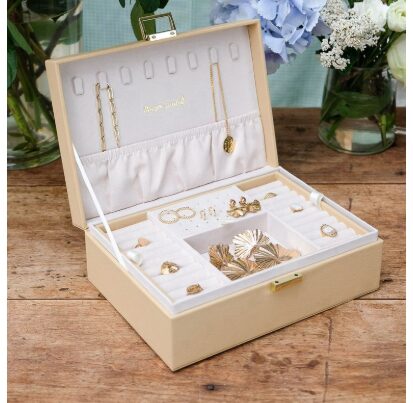 Pratico e capiente, questo portagioie è perfetto per chi ama i colori neutri e delicati.