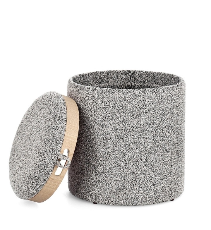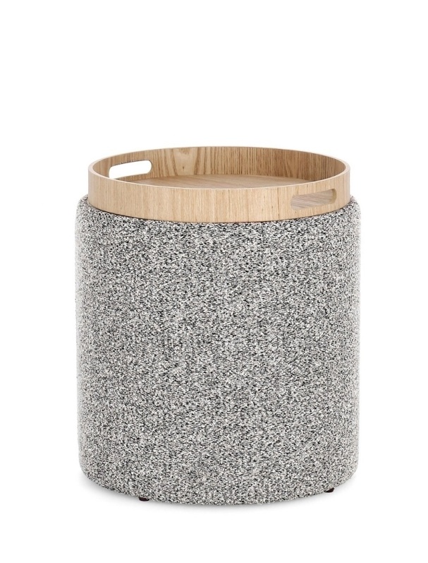 Pouf contenitore con coperchio-vassoio in tessuto bouclè grigio