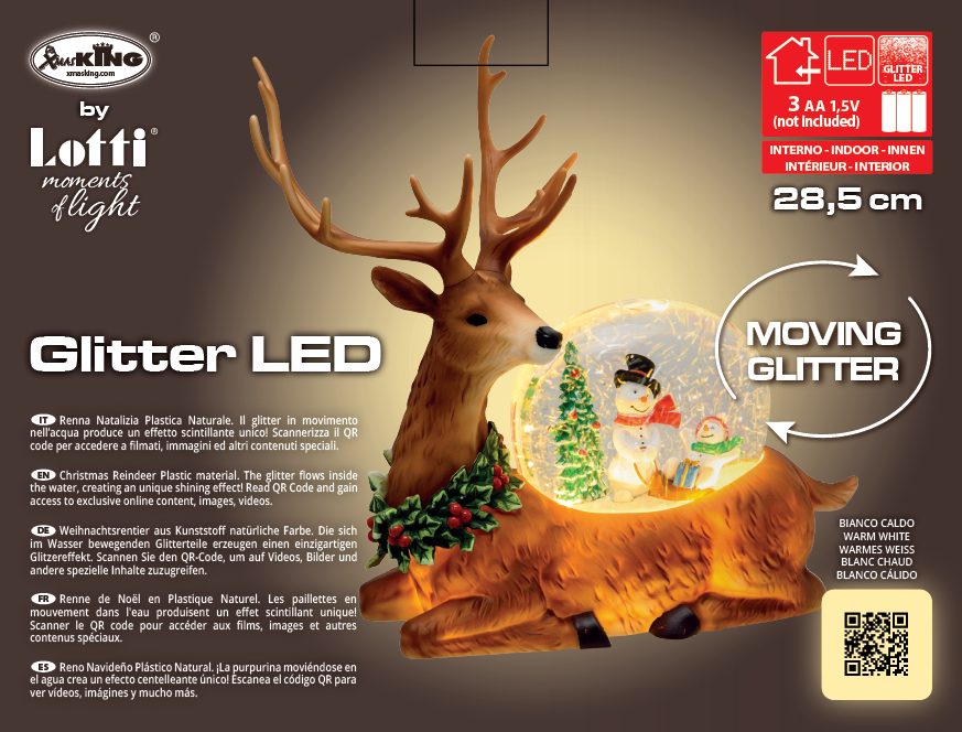 Renna Natalizia con sfera GLITTER LED L28,5cm Naturale – Lotti
