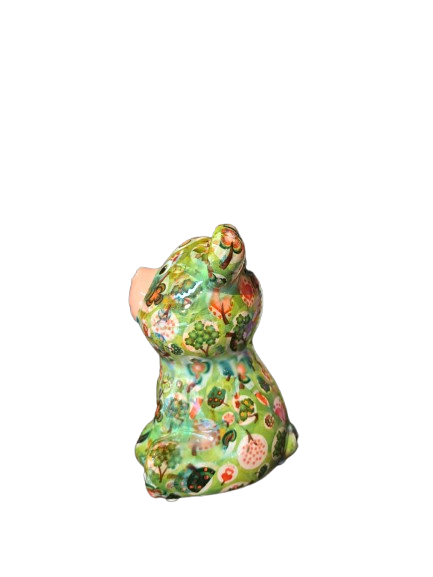 Salvadanaio Orso Toto fiori verde H.19 cm – Pomme Pidou