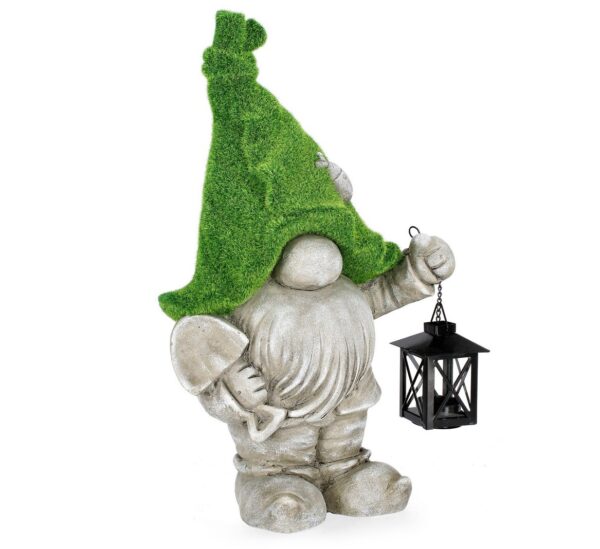 Scultura da giardino Gnomo con Lanterna. Nella lanterna può essere posizionata una candela.