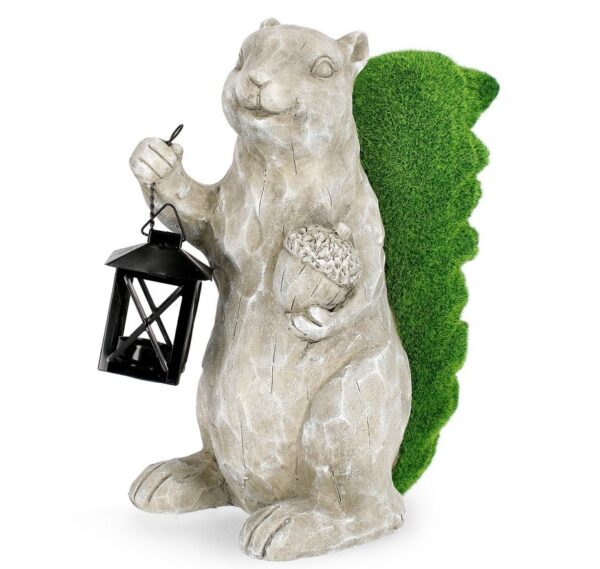 Scultura da giardino Scoiattolo con Lanterna. Nella lanterna può essere posizionata una candela.