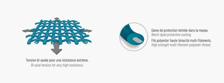 Ideale per l’esterno: eccellente resistenza ai raggi UV, asciugatura ultra-rapida, trattamento antimuffa e manutenzione molto semplice con acqua e sapone. Tela tecnica fabbricata in Francia.