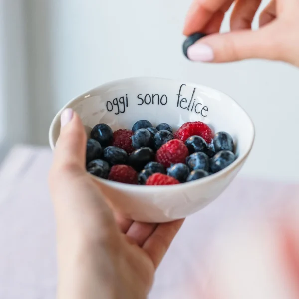 Set 2 Coppette in gres decoro Oggi sono felice