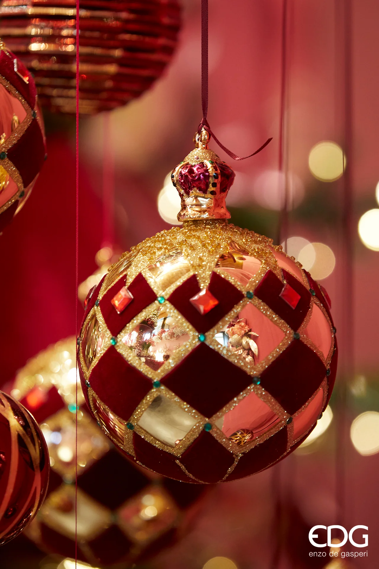 Sfera in Vetro Rombi rosso e oro con Corona Ø12 cm – EDG
