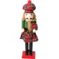 Pendente a sfera in vetro decorata con motivo a rombi oro e rosso scuro e una corona sulla parte superiore