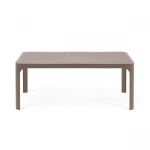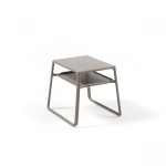 Tavolo basso. Polipropilene fiberglass trattato anti-UV e colorato in massa. Finitura opaca. Dotato di piedini antiscivolo. Resina riciclabile.