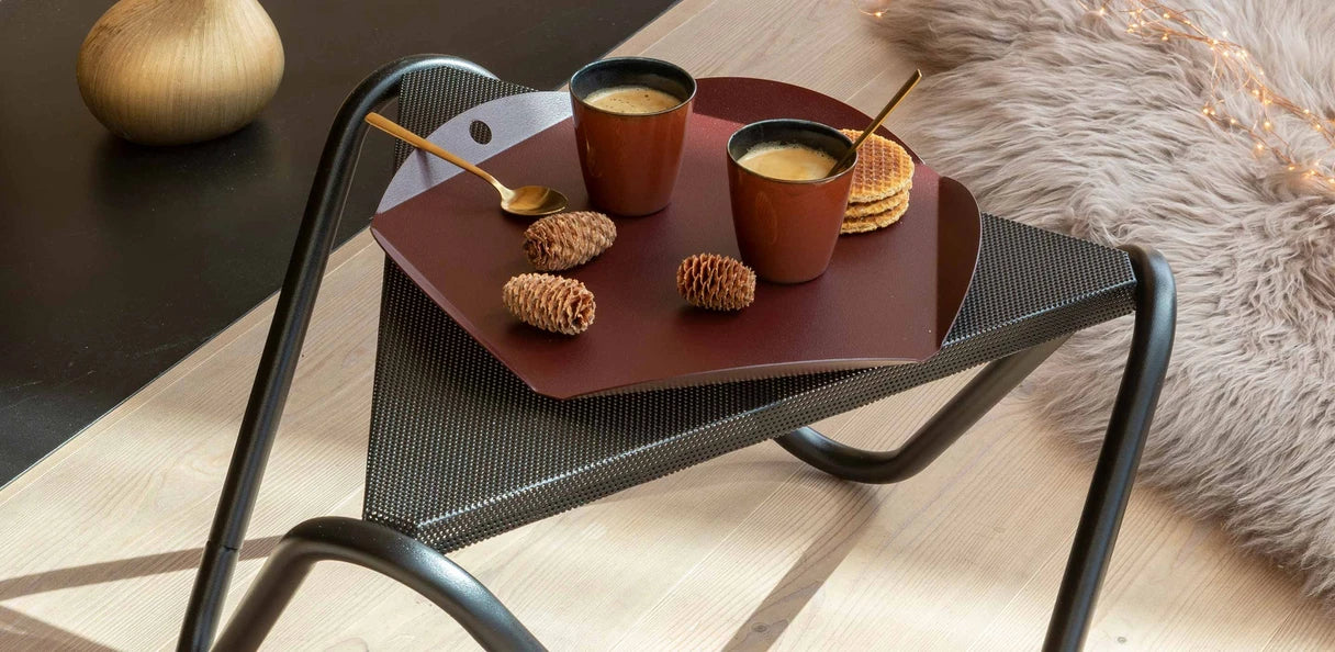 VOGUE è il tavolino ausiliare ideale per avere a portata di mano un libro, un caffè o un bicchiere di succo di frutta. Pratico grazie alla caratteristica impilabile, dotato di un nuovo pianale traforato che presenta un motivo delicato e raffinato.Design e originalità grazie alla sua forma triangolare molto moderna che si sposa benissimo con tutti i modelli della gamma LAFUMA MOBILIER per la terrazza, a bordo piscina e per l’interno. Tubi noir, tubi titane o tubi bianchi Kaolin, lasciatevi sedurre dallo stile elegante e creativo.