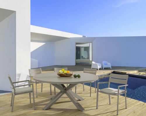 Tavolo Skipper ø 160 con 6 poltroncine Shark tortora – Bizzotto