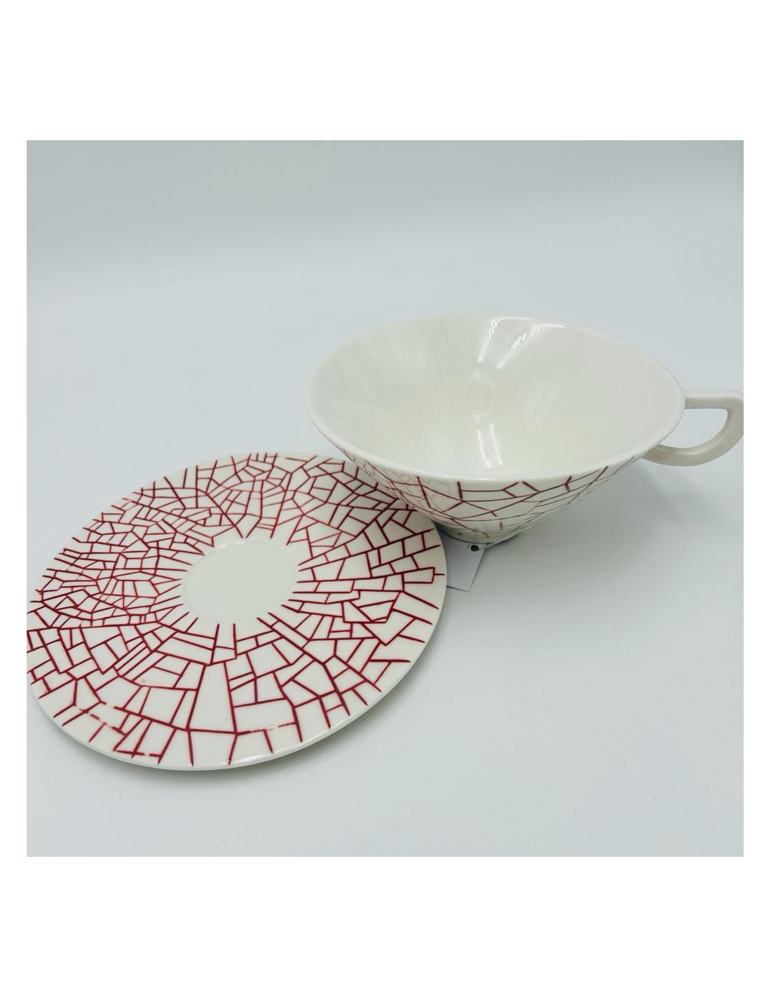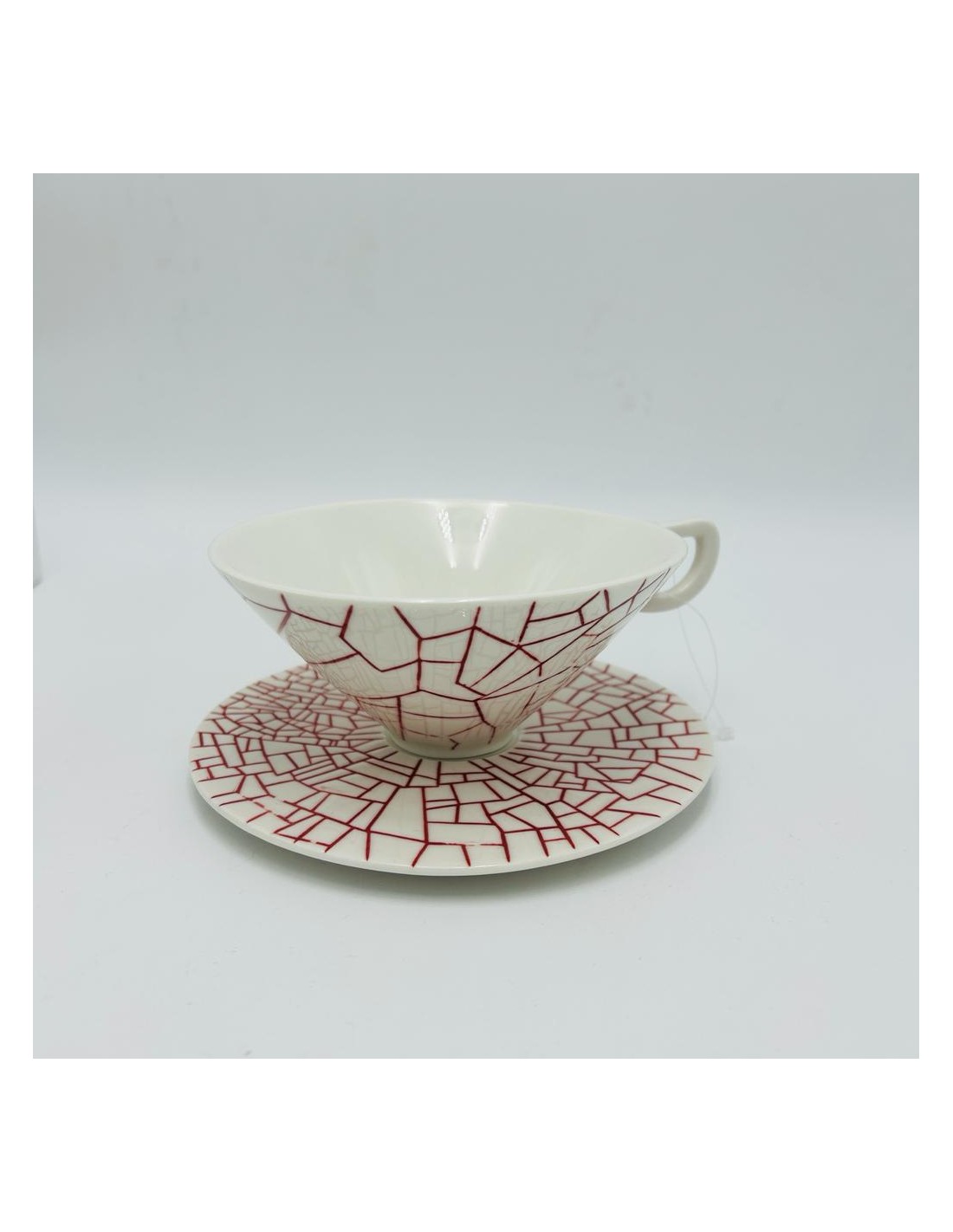 Tazza da tè in porcellana di forma conica con disegno astratto rosso
