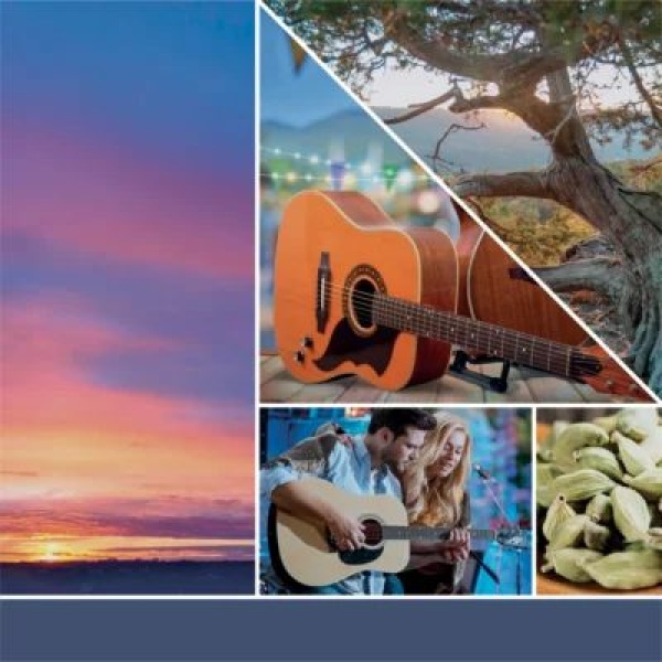 Le note della musica live risuonano per il festival al tramonto, portando con sé accenti che richiamano il cardamomo, l’acquamarina e note legnose.