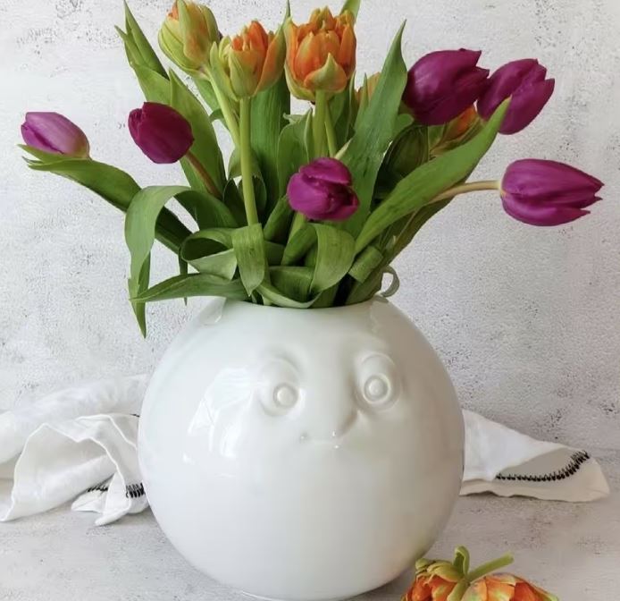 Simpaticissimo Vaso realizzato in porcellana resistente per questo lavabile in Lavastoviglie. Prodotto ispirandosi ad alcuni cortometraggi animati in 3D che rappresentano moltissime espressioni facciali di Star di videoclip virali su YouTube. La missione dei designer è quella di condividere il senso di umorismo. Perfetto per fiori freschi colorati e fiori secchi. Spedito in confezione regalo dal design esclusivo.