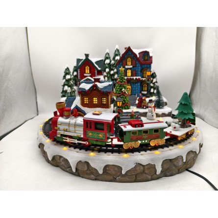 Il treno fa il giro del villaggio mentre suona 8 canzoni natalizie.